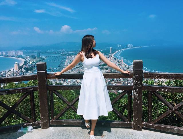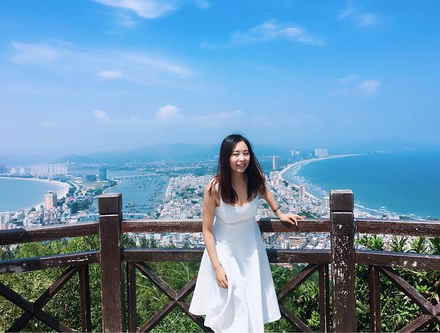 早上10点⌚️就到酒店前面的海滩游泳🏊游玩回酒店三楼喝早茶🍵,早茶味道不错但服务一般,接着换好衣服来到🌛双月湾观景台,涂了三层防晒还是被晒爆了😂只能开心就好啦[转圈]👻