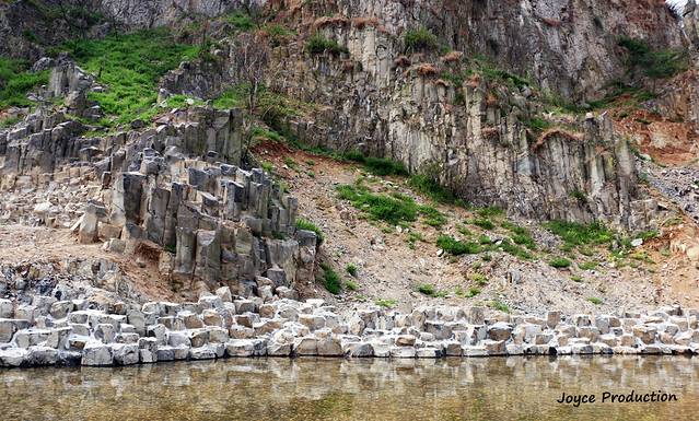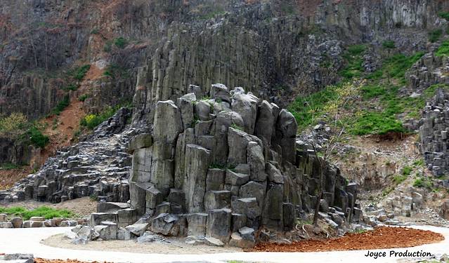 上个世纪,开山采石对捺山的生态环境造成了一定破坏,却无意中使玄武岩石柱和一系列地质变迁的图景重见天日。捺山的天然石柱林为“黑色致密状橄榄玄武岩”,目前裸露处主要在山的西南坡、东北坡的山腰处,呈不规则环带状分布。”