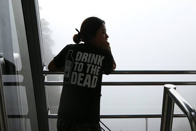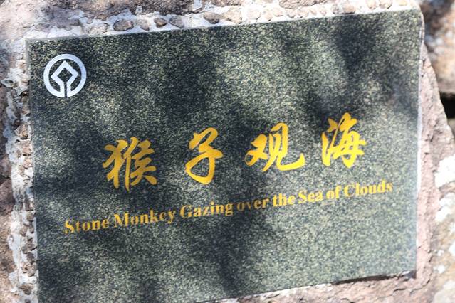 从清凉台走不远就是猴子观海,可惜我们到的时候已被云雾遮到,只能依稀的见到猴子的模样,海倒是挺大,把猴子挡住了,请大家自行脑补!