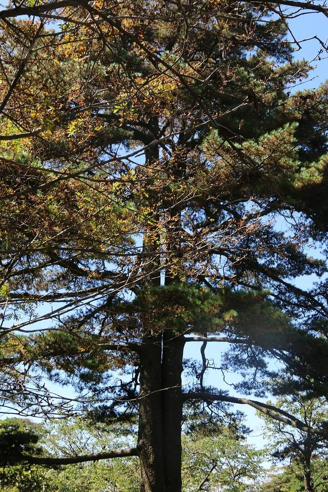 从始信峰下来回黑虎松往北海进发,便会看到连理松,连理松为黄山十大名松之一,列入世界遗产名录。位于自“黑虎松”去“始信峰”途中左侧。树高20多米,在离地2米处树分两干,并蒂齐肩,其粗细、高低几乎一模一样。