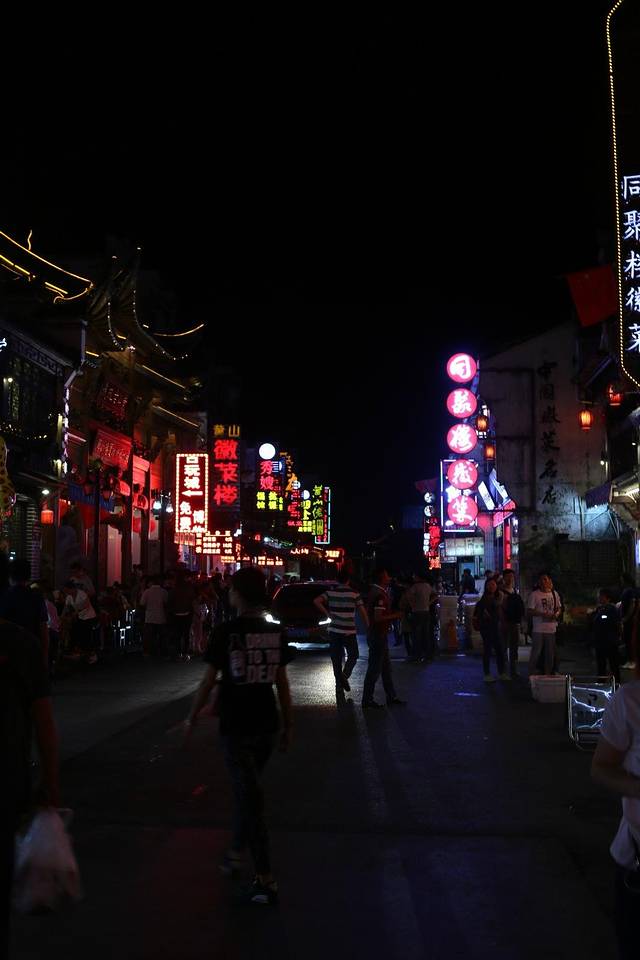 办理完入住,我们就赶紧出门觅食,打车前往屯溪老街,夜里9点多钟,老街依旧很热闹,游客很多,其实感觉全国各地的老街都是那么回事大同小异,东西都是义乌进的小商品,哈哈,其实主要是转一转,看看当地的特色建筑,并没有打算买什么东西。