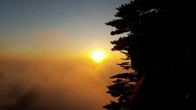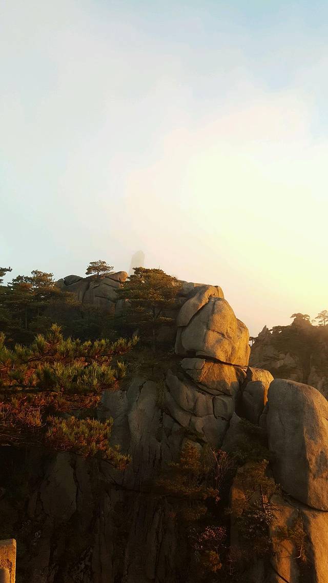 看完飞来石,我们也开始往光明顶进发,准备回酒店,在路上我们看到了黄山的日落,特别美,要不是晓晓的鼓励,我们也不能够看到西海大峡谷美丽的景色,也看不到黄山这么美的日落。