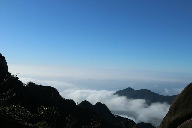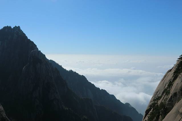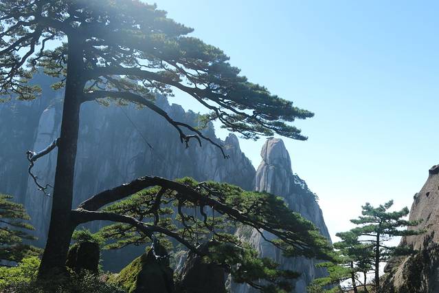 第一天从后山云谷寺上,坐缆车到达白鹅新站然后开始爬山,路线是黑虎松-竖琴松-始信峰-北海宾馆-清凉台-猴子观海-光明顶-天海-白云宾馆-入住放行李-西海大峡谷地轨缆车下谷底-经二环-一环上山至西海大峡谷-排云亭-飞来石-看日落-光明顶-白云宾馆
