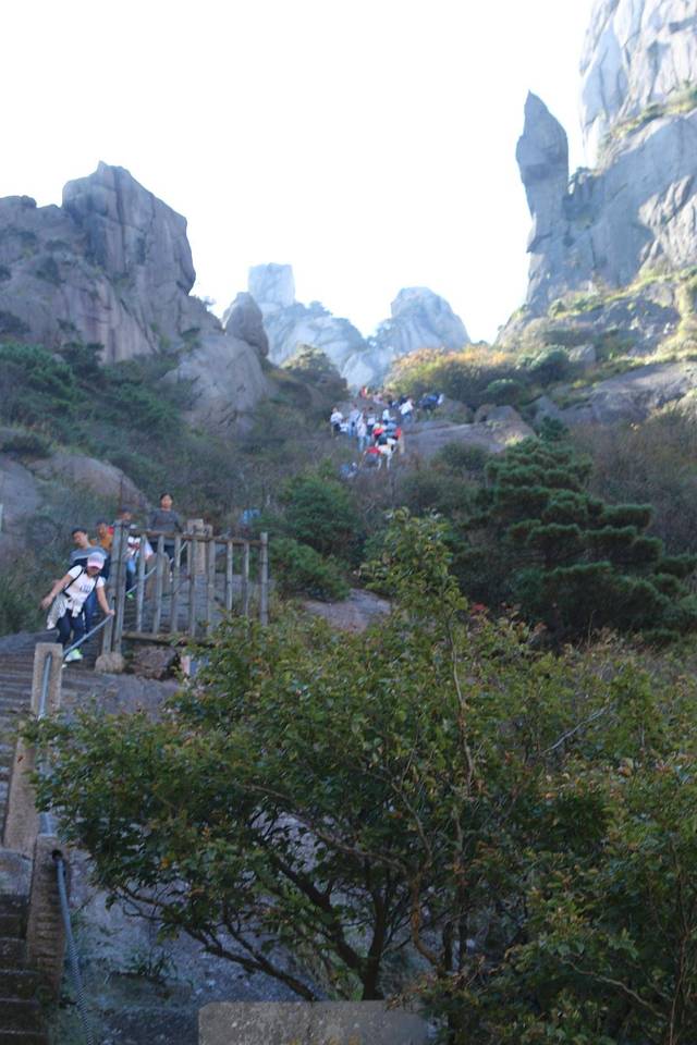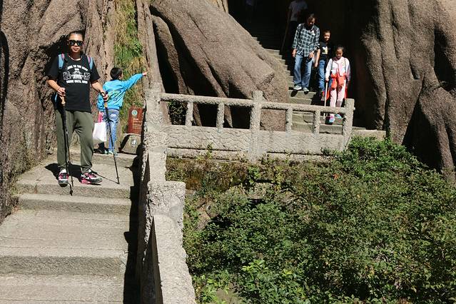 下山还是挺快的,用了20来分钟就下了天都峰,然后返回迎客松,去坐缆车下山,之前是从迎客松下山到天都峰,回去就是得爬山到迎客松,回去的路跟来的时候是不一样的,坡度比较大,但是距离比较短,到了迎客松还得继续走1公里多的山路才能到达玉屏缆车。