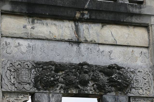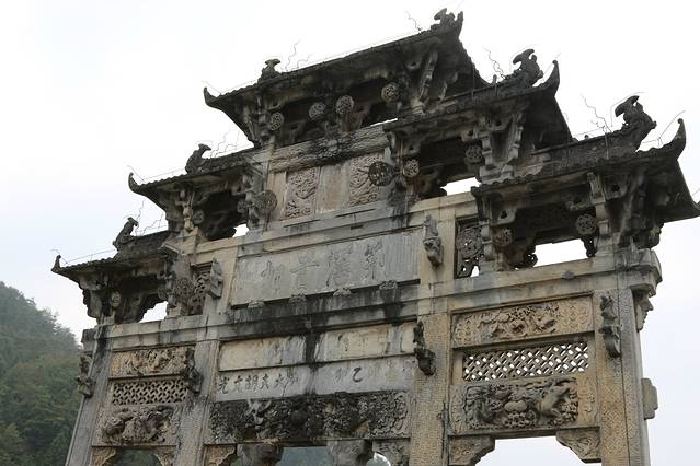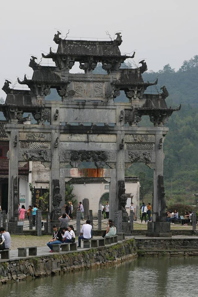 当来到西递村口,一座兴建于明万历六年(1578)的“胡文光牌坊”,俗称“西递牌楼”,高高耸峙在眼前。当时的西递人胡文光(1521-1593)登嘉靖乙卯科进士,先为江西万载县知县,后为胶州刺史,迁荆王府长史,授四品朝列大夫。因其政绩显著,皇帝遂愿准敕建这座石坊。历史上,西递村头曾建有13座牌坊,大都为旌表孝子和贞节的。现仅存的胡文光牌坊是最雄伟最精致的,堪称明代徽派石坊的代表作。
