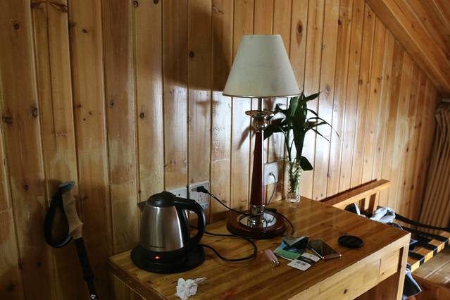 今天的行程算是结束了,虽然行程有了稍微的调整,但是所有想去的地方还是都去了,而且看到了美丽的日落,没有任何遗憾了,回到酒店赶紧吃点东西,洗个热水澡,泡泡脚,顺道再对饮几杯,窗外住帐篷的游客已经点起了灯,我俩躺在床上翻看今天的照片,感叹黄山的美。