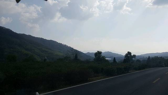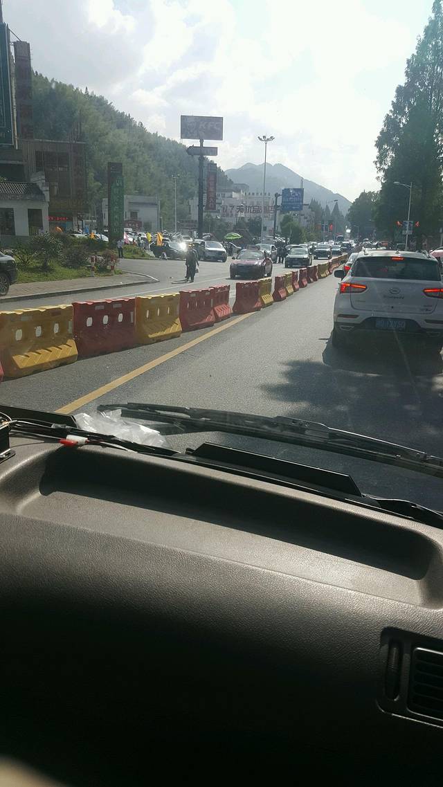 从黄山游客中心到宏村车程一个小时左右,中型面包车,一人一座按号入座,单车承载18人,我的车票是18号,最后一张票,位置是副驾驶,这个位置挺带劲,一路还可以欣赏沿途的风景,转眼就到了宏村。
