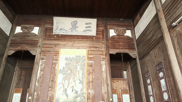 出桃李园,就步入西园,与西园相邻,与东园通连的“三畏堂”,呈五间二楼结构,大厅高悬匾额“三畏”二字及跋,取“畏天命、畏圣旨、畏大人”之意。堂前轩敞,天井宽大。