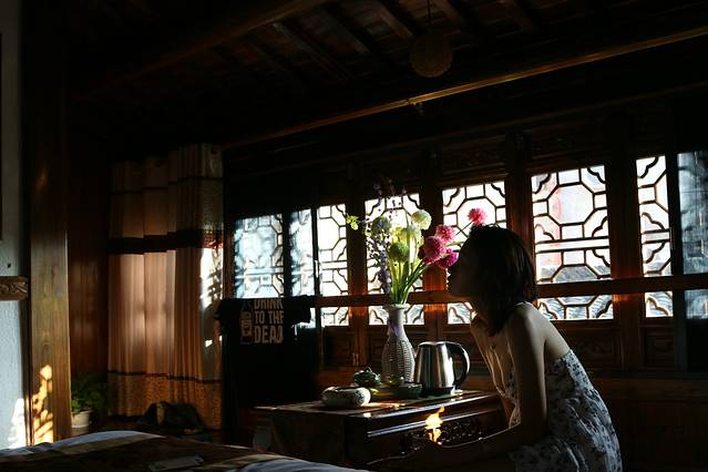 清晨起来,打开窗户,伴着宏村的朝阳,享受宏村清晨的惬意,沏一壶茶,发一会呆,赏一方景。