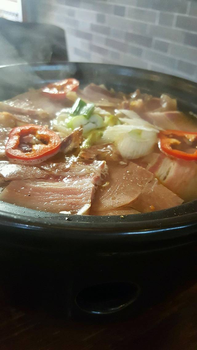 外边下着雨,就想吃口热乎的,正好黎阳老街里有一家店看着挺有意思,搭的灶台,生柴火,大铁锅,贴饼子,就决定吃这家了,我们要的牛杂锅,还有柴鸡锅等等,料挺足,点了几份刷菜吃的挺美。