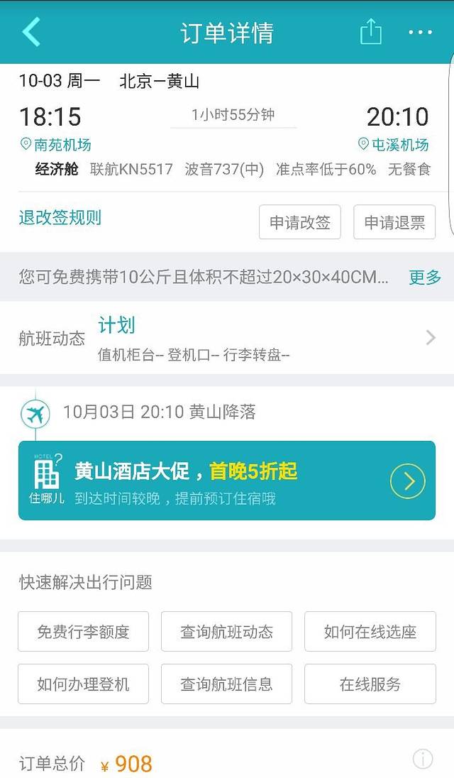 这次的旅行算是一次说走就走的旅行,虽然这已经不是第一次说走就走的旅行了,但是依旧还是很兴奋,而且又是赶上十一国庆黄金周,一切非常紧张,从有想法出游,到决定去黄山,到设计路线天数,订酒店机票,只用了两天的时间,因为去黄山已经是国庆放假前6天才决定的,国庆黄金周是仅次于春节的长假,机票,车票,酒店都已经非常紧张,而且一号家里聚餐,二号上班,三号中午也是家庭聚会,所以把行程安排在三号下午从北京出发,这样可以在黄山屯溪睡个安稳觉,四号一早就可以出发黄山。十一中间的飞机票还都是很便宜的,酒店也还算很顺利,除了黄山山顶的白云宾馆的房型几经变更以外,其他的还是很顺利,主要是回来的交通问题,从黄山回北京已经高铁票已经没有了,飞机的时间到北京以接近凌晨,第二天还要上班,所以不太想坐飞机,但是火车票又没有了,所以只能用去哪网的加速抢票功能试试运气,但到下午的时候,发现机票已经只剩下最后两张了,不敢冒险,只能做个双保险,先把机票买了保证能正常回京不影响工作,另一边继续抢高铁票,如果抢到了,就把飞机票退了,如果没抢到,也能正常坐飞机回来,最后结果还是没有抢到票,坐飞机回来的。这次黄山之行最大的收获就是锻炼了自己的意志品质,在爬西海大峡谷的时候,真是想要放弃,最后在晓宝贝的鼓励下,克服了自己的疲劳,终于给了我们一个完美的黄山之旅。