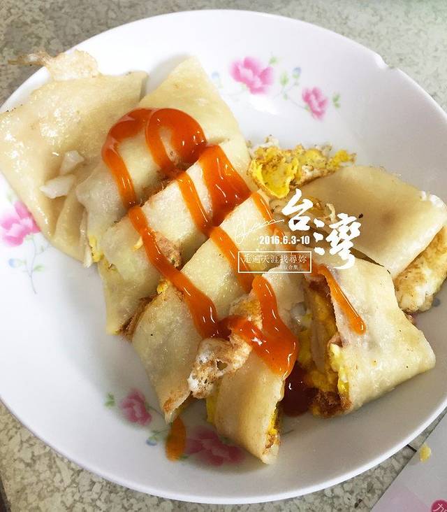 台湾的早餐和上海类似,豆浆、蛋饼、煎包,西式的有吐司、汉堡、三明治等,不过蛋饼的饼皮和我们不太一样,口感更韧有嚼劲~~