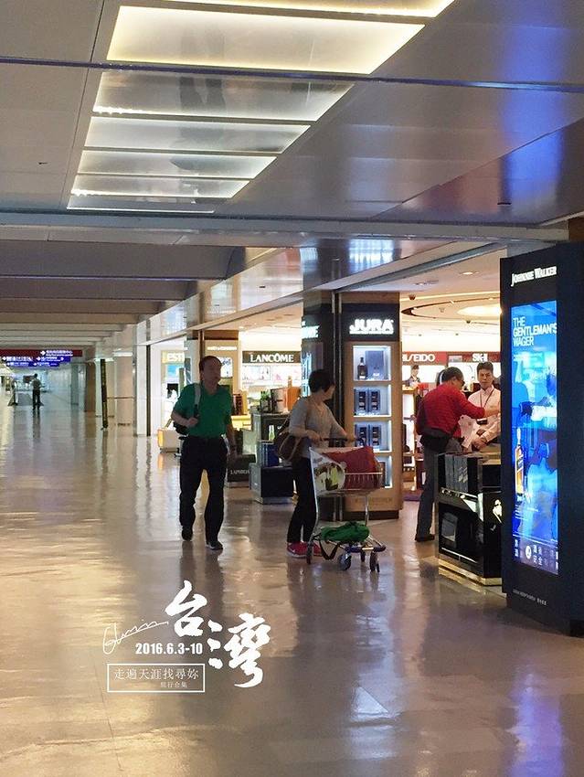 早上8:15的灰机,前一天晚上就住机场附近的酒店,兴奋得一晚睡不着,直接导致第二天萎靡不振。机场免税店是必须逛的了~需要注意的是安检出入境什么的现在排队很久,请提早至少2-3小时到机场。。。不然就是一路狂奔免税店也只能看看了。。。飞行时间很短大约1个多小时就到桃园机场,运气真是好2号听新闻报道说桃园机场淹水了还在担心会不会影响我们的行程,结果3号天气晴好,出了机场热浪扑面而来,有点恍惚竟然已经身处南国了。