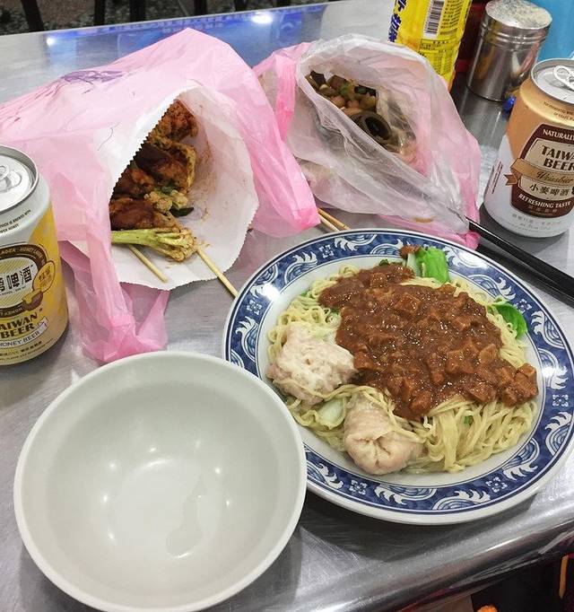 一早赶飞机已饿晕,入住后放下行李就去据说是当地人最喜欢的林东芳吃牛肉面。作为一枚牛肉面控我爱一切台式牛肉面,这家虽然是街边小店,汤清味道有点偏咸,不过不影响面条劲道的口感,大块的牛肉品质没得说啊~~不得不说台湾的牛肉品质真的好,后来在自助火锅和在夜市吃的骰子牛肉都是一样的口感,就连方便面酱料包里的牛肉都毫不含糊好吗这么说着口水又流下来惹。。。。。擦擦