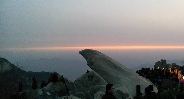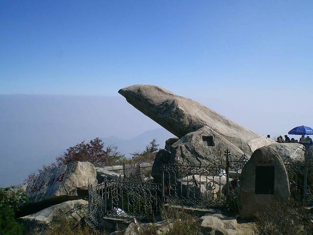 日观峰位于泰山玉皇顶东南,古称介丘岩,因可观日出而名。相传在峰巅西可望秦,南可望越,故又称秦观峰、越观峰。