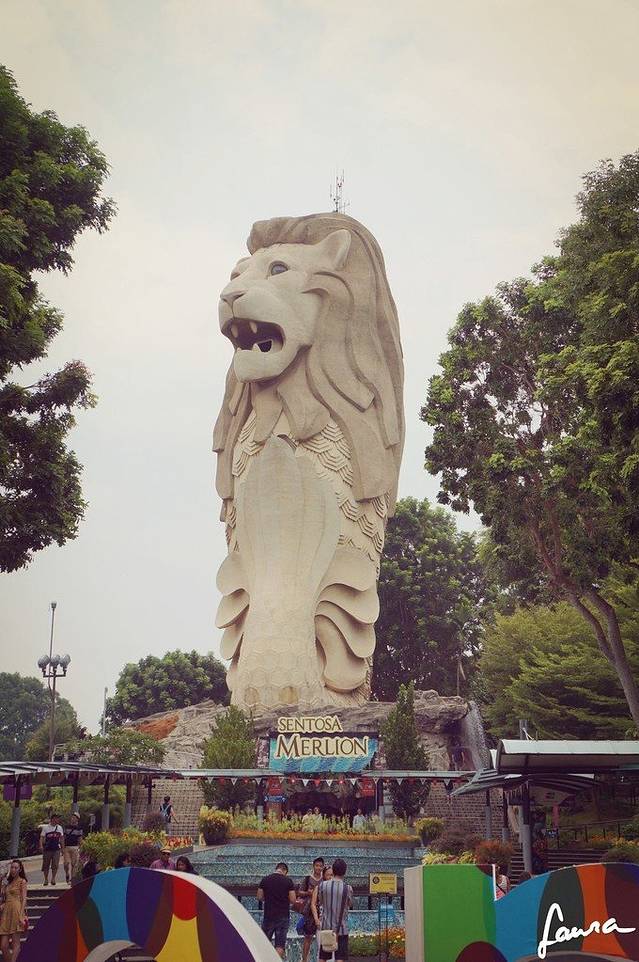 鱼尾狮塔是圣淘沙的标志,也是新加坡的旅游标志。它是新加坡最高的自由式结构建筑,鱼尾狮身上的320片鱼鳞还是由光导纤维制成的,到了夜晚,便会不断变换颜色,醒目而美丽。(from百度百科)