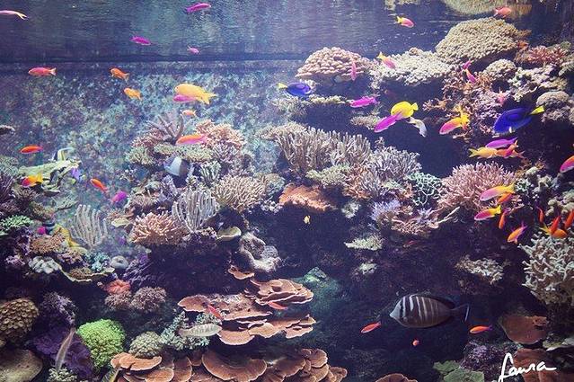 就这样坐在巨幕前面,看着里面的大鱼群小鱼群,从你面前游过,仿佛时间都停止了。