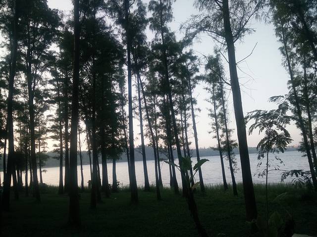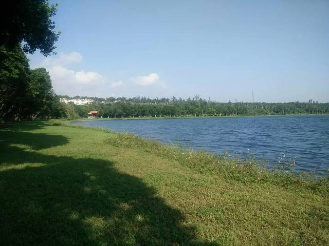 整个湖很大,湖水很蓝,湖边的环境很优美,树木郁郁葱葱,人不算多挺安静,空气清新。长期在湛江的人完全可以办一张60元的年卡经常过来走走对身体也是很有好处的。这次准备不充分,走到5分之一两个人的手机都没电了,所以照片很少。