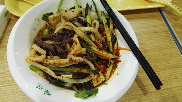 晚饭就在酒店旁边的凉皮店解决了。 很好吃,很正宗,一碗女生足够了。