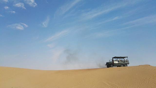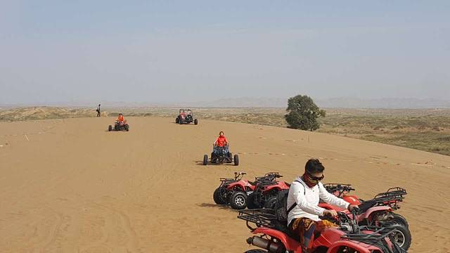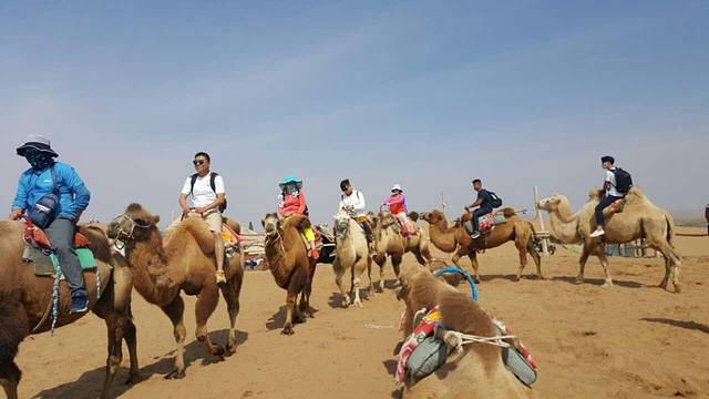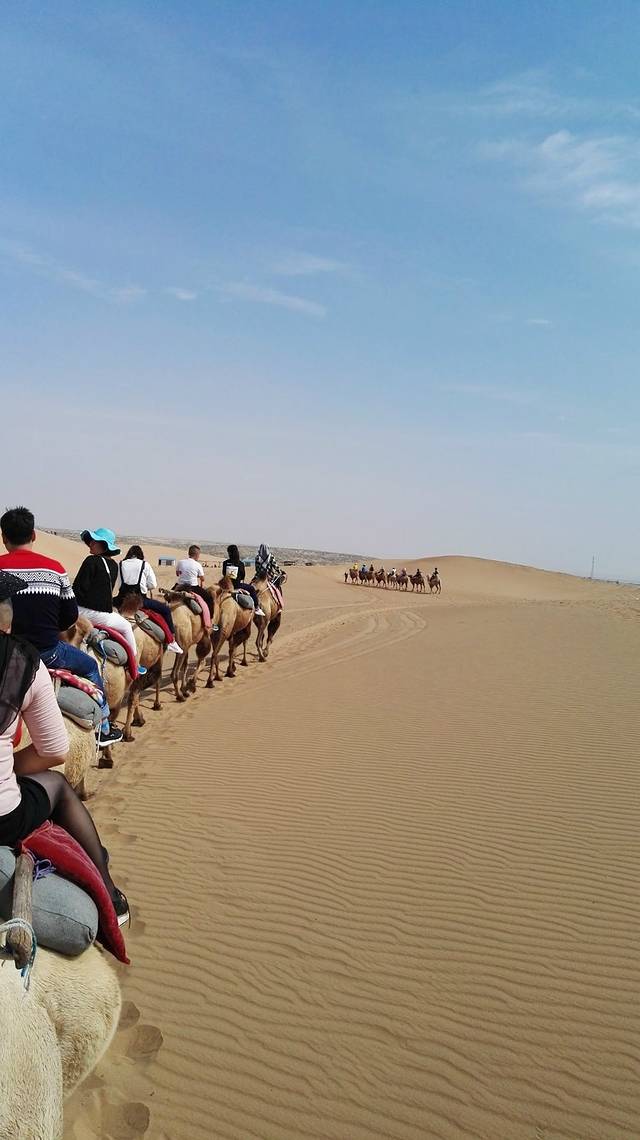 路上司机说腾格里沙漠和沙坡头很多游乐项目是一样的,而且便宜很多。所以建议我们在这里玩,然后再去沙坡头玩其它项目。于是我们在腾格里沙漠买了所有项目的套票,一个人268. 包括了越野车来回,骑马,骑骆驼,沙滩摩托,滑沙。 但是感觉一般,尤其是下午去了沙坡头以后,感觉腾格里的项目虽然便宜,但是游玩度不高,不刺激。 所以建议大家还是去沙坡头玩,腾格里沙漠其实完全可以不去。 上几张图片吧