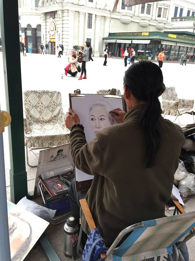 索菲亚教堂附近街边艺术家,他的生意不错,画得也很认真,画的价格一百元不等,看尺寸和其他费用。