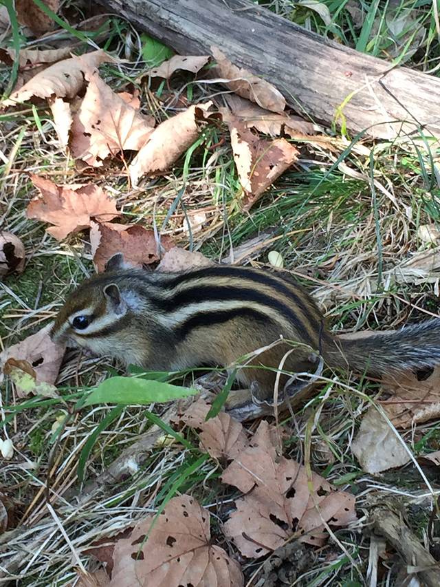 它是一只贪吃,不怕生的小松鼠,只要给它好吃的,就乖乖配合我们拍照。