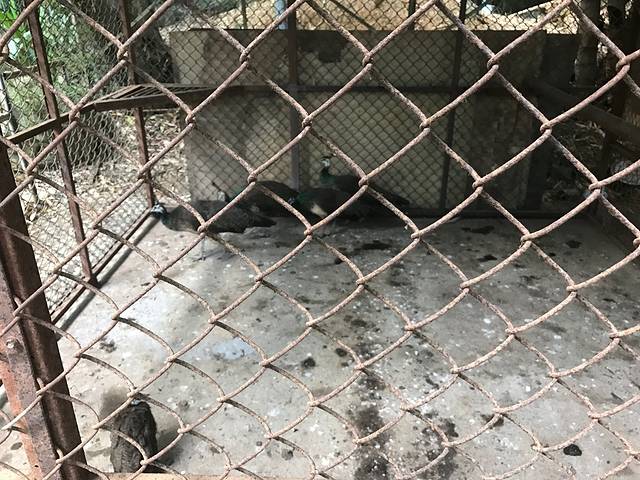 不知道这些孔雀为什么被养在了笼子里,可能是因为还是些小孔雀吧