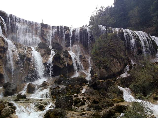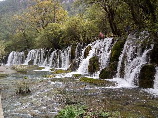 这里就是老版《西游记》的场景拍摄处,很经典。看完瀑布要徒步往下走800米才有车站,上车时已经到了14:40,用了10 分钟回到诺日朗(三条沟交汇处)。中间有镜海景点,但没有去看,一是时间紧,二是觉得相比前面景点,镜海没那么有特色。