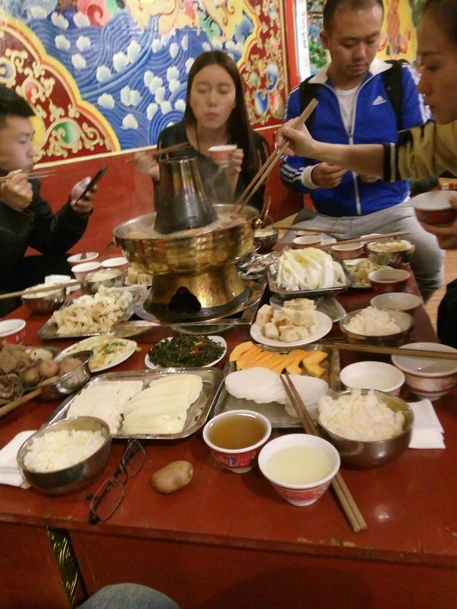 藏式火锅东西很丰富,吃到撑了老板还要加肉给你。