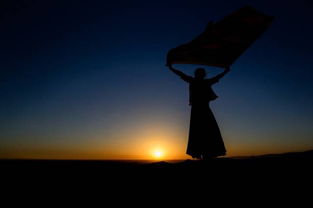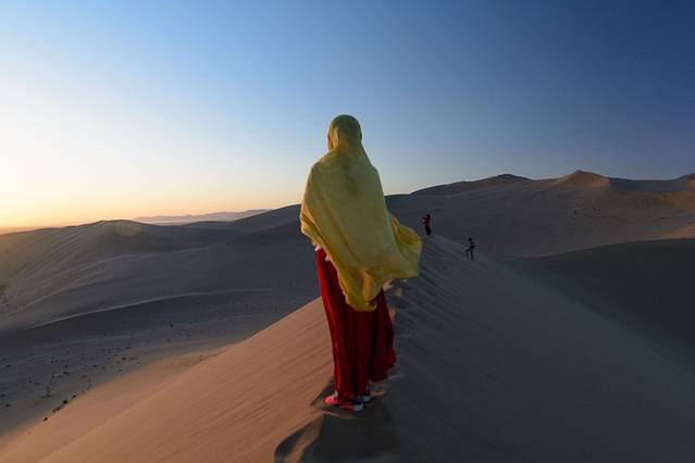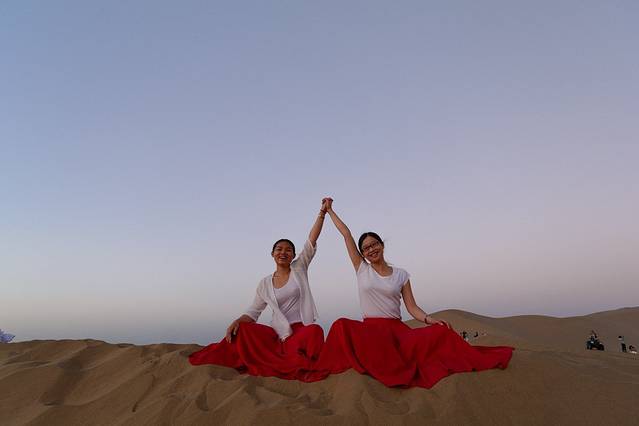 沙漠露营是在鸣沙山的背后,不进入景区。提前在青旅预约好,200元(包含晚饭)。师傅会在景区门口等我们。