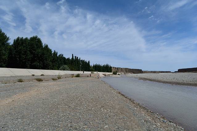 到了千佛洞后,师傅和我们说,这个景点也不值得看,我们就没进去,就去景区旁边的党河看了看。
