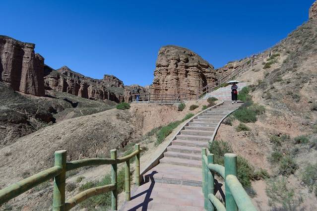 下午2点钟在青年旅舍等着司机师傅来接我,还有三个小伙伴,开始结伴而行。3点左右到了冰沟丹霞。门票是40元,观光车20元。冰沟丹霞有两个观景台,参观时间约2小时左右。