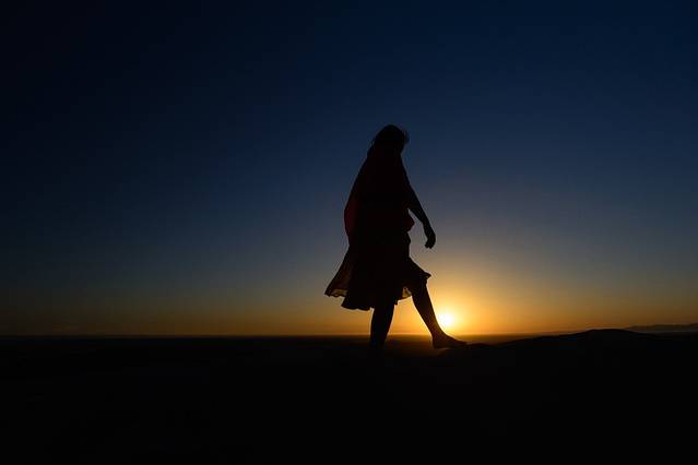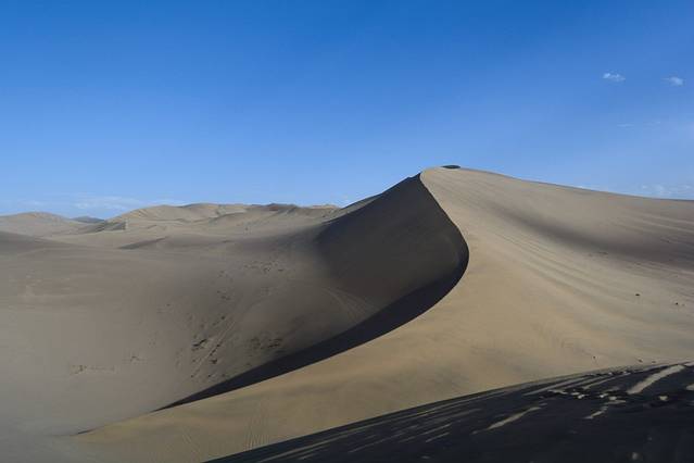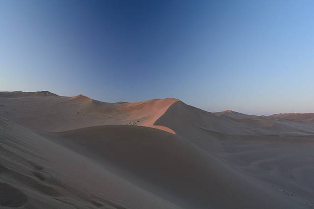 在阳光的照射下,沙漠的曲线非常漂亮。脱了鞋后,踩在沙子上,本想好好感受一下,结果发现躺的脚疼。7点多出了景区,准备去沙漠里露营。