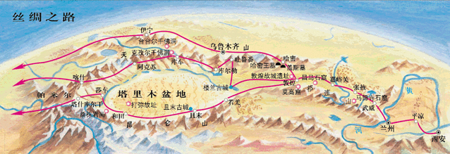 公元前2世纪,汉武帝派张骞出使并开通西域之后,在古代长安和罗马之间形成了一条以丝绸贸易为特色,横贯亚、非、欧的贸易通道和文化走廊,中国与遥远的西方世界突破之间地域束缚,开始了真正意义上的政治、经济、文化交流,极大的丰富并加世界文明的进程。19世纪70年代德国地理学家李希芬首先将其称为“丝绸之路”。