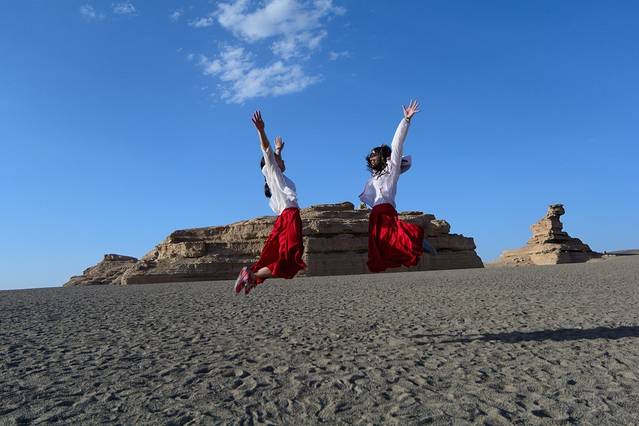 早上7点半到了敦煌后,先找到敦煌国际青年旅舍。10点钟的时候,开始西线旅行。与我一起拼车的有8位。开始结伴而行。这是我结伴旅行中,最有趣的一次。各种学霸、各种科普、各种欢笑。还有我很喜欢的两位美女,感谢给我当了一路的模特。