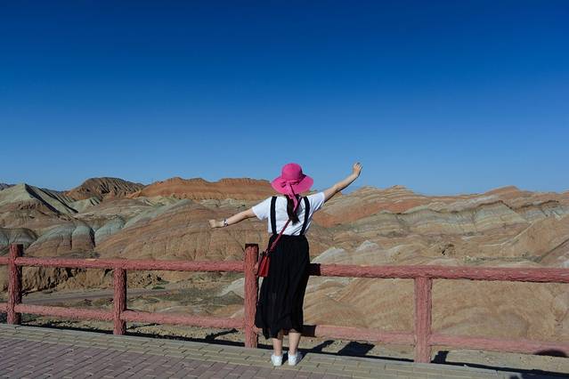 冰沟丹霞离七彩丹霞比较近,门票40元,观光车20元。七彩丹霞有4个观景台,可以分别领略全景和特写板。其中4号观景台更适合看日落。