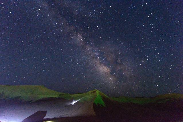 看完日落后,准备吃晚饭。参加篝火晚会。之后就是重头戏了。11之后,我们就去看星空了,爬到沙漠高处,避开灯光。此时满天星斗,银河清晰可见,偶尔看到划过的流星,却来不及许愿。静静的躺在沙漠里,仰望星空。。。这时,我终于喜欢上那首歌了。夜空中最亮的星。