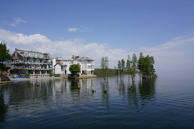 双廊镇位于大理市东北部,是“一个小渔村,景色不多,周围有玉几岛、金梭岛和小普陀等岛屿,玉几岛上还有杨丽萍的私人别墅和画家赵青的青庐。 静谧是双廊的一大特点,可惜现在双廊到处都在建客栈,除了商业化还有各种工地风,太影响感官了。