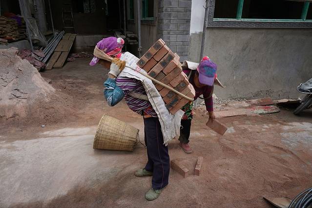 施子窝门口看到背砖头的女人们,忍不住拍了。