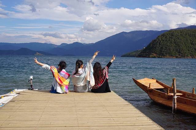 泸沽湖香格里拉一起的两位青岛美女,缘分也是足的。
