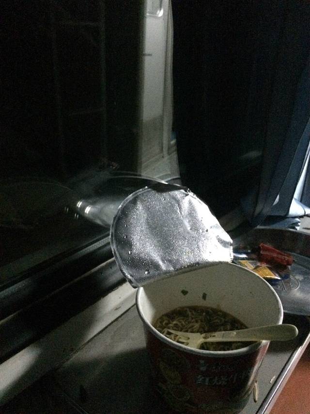 对了,下火车前小张同学看我只有一盒冷冰冰的汉堡,送给了我一盒泡面,吃睡都不愁了,安心。