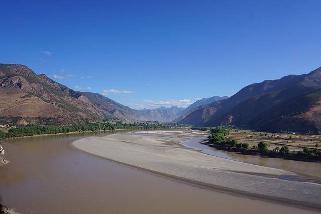 虎跳峡,中国最深的峡谷之一。峡谷长16千米,南岸玉龙雪山主峰海拔5596米,北岸中甸雪山海拔5,396米,中间江流宽仅30-60米。虎跳峡的上峡口海拔1800米,下峡口海拔1630米,两岸山岭和江面相差2500-3000米,谷坡陡峭,蔚为壮观。江流在峡内连续下跌7个陡坎,落差170米,水势汹涌,声闻数里,为世界上最深的大峡谷之一。