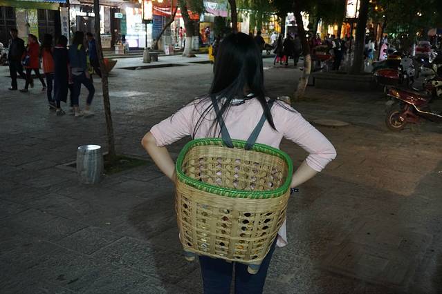 借了彩辫阿婆的箩筐,我想感受一下这个的重量,他们都喜欢用这个背东西,绝对比想象中的重。