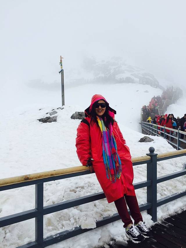 君君前半段处于比较high的,但是因为昨天刚到丽江今天就上了雪山还未适应,后面有点缺氧,所以我们下去的挺快。
