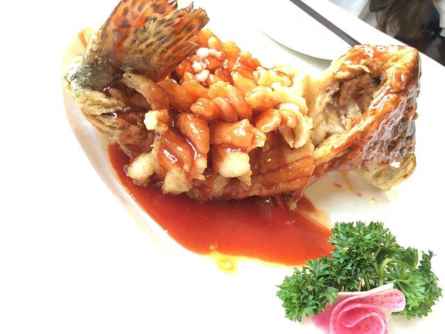 苏州闻名菜式 松鼠桂鱼,味偏甜。