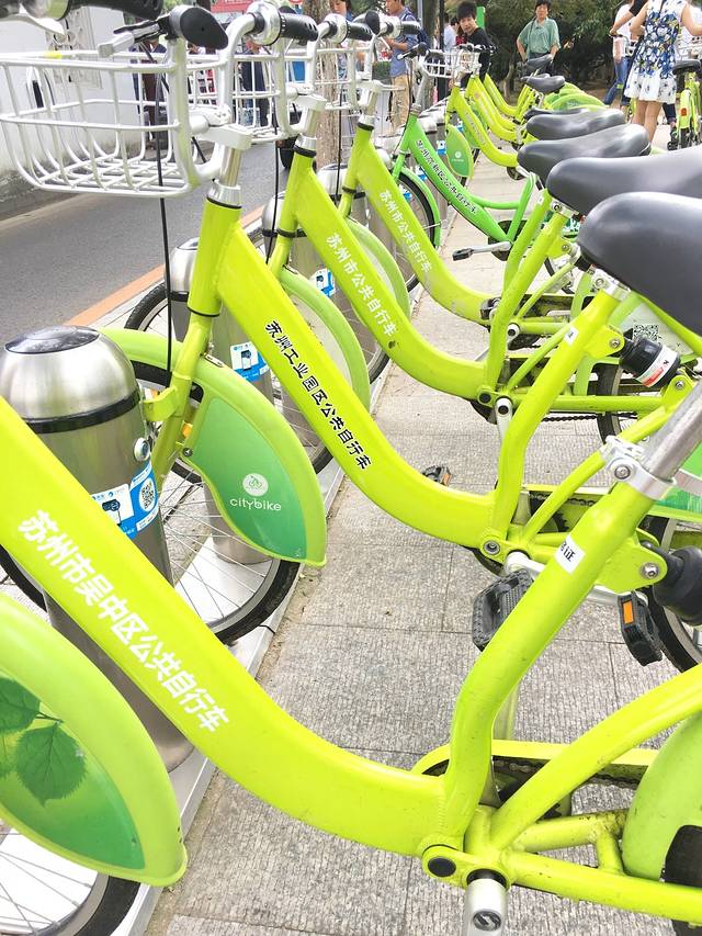 在苏州,姑苏区遍布自行车点,通过支付宝扫码可以租用,骑车来感受苏州。