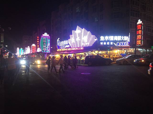 朋友也到了,稍事休息一起向有名的啤酒街出发!真是热闹,当地人说现在天凉了,夏天的时候真是人声鼎沸。看了几家店铺经营的海鲜都差不多,价位略有不同,选了一家食客较多,价位中等的铺面。上了菜就明白为啥便宜一些了—量小!我老家秦皇岛的,啥海鲜都吃过滴!总结:来啤酒街可以感受气氛,但吃饱饭要考虑兜里的银子啦!