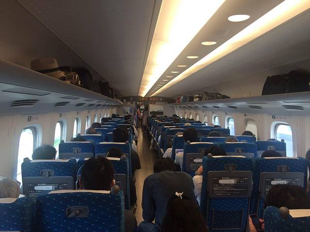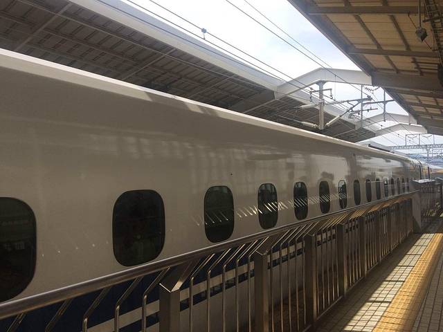 跟高铁差不多。因为自由席不固定时间和座位,所以只能在1.2.3最后3列排队上车…到终站东京需要经过2站。