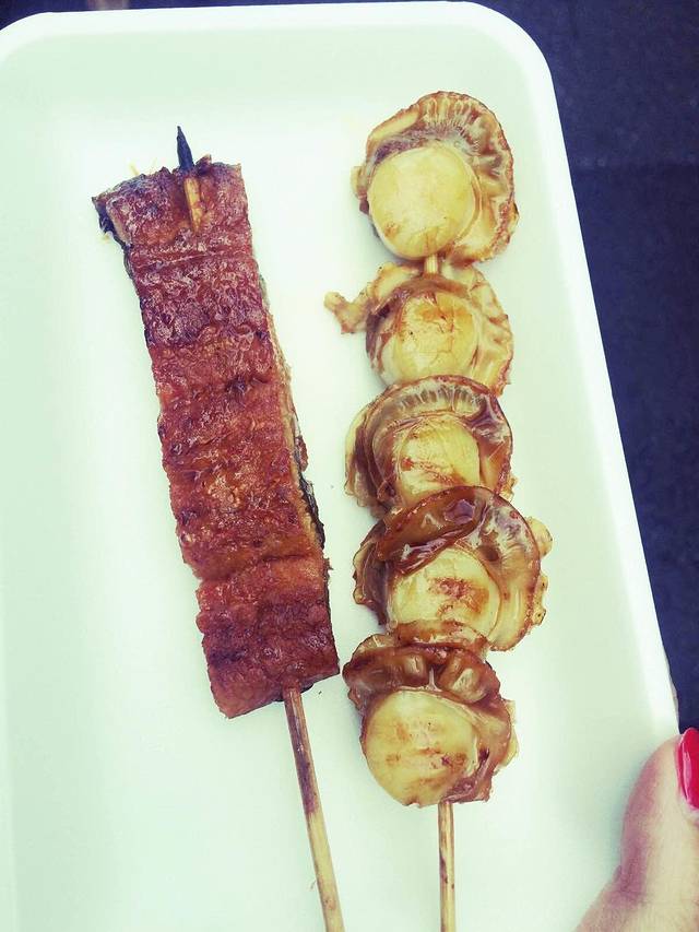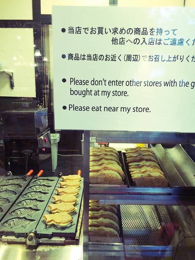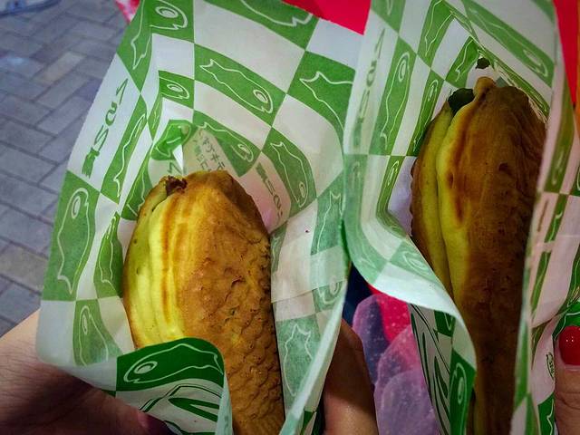 鯛鱼烧。抹茶口味和传统口味,都比较甜,不过是正宗的必须捧场吃完~