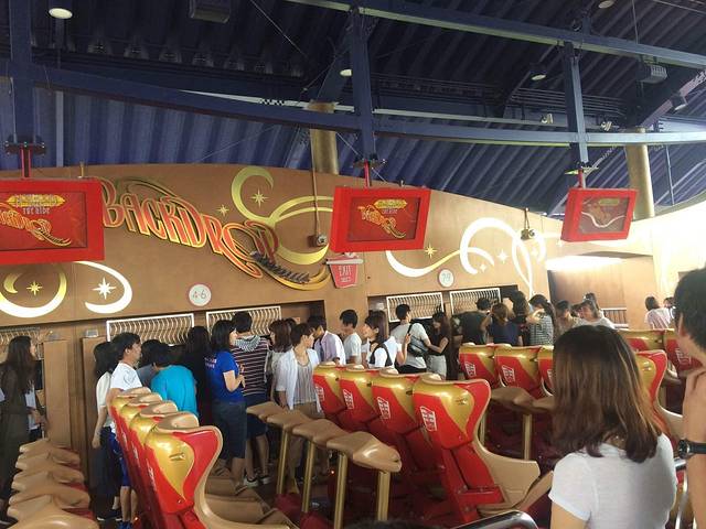 小伙伴不要刺激的,分头行动。第一个项目就来个爽的——惊声尖叫的过山车。Single的队伍相对等候时间短。